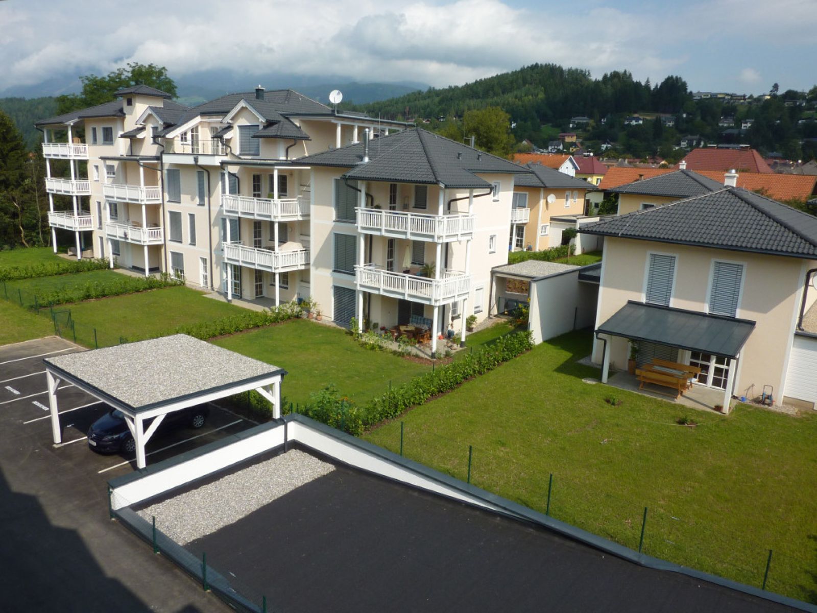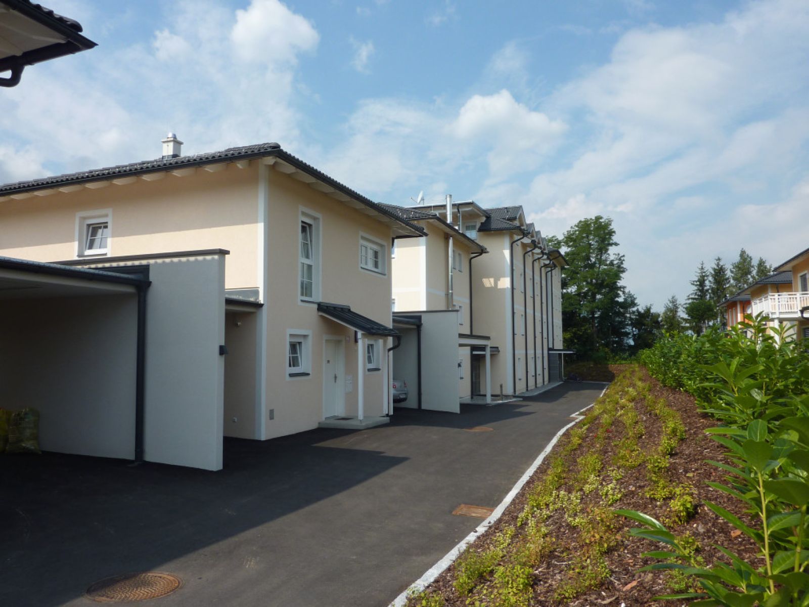 Die kleinen Stadtvillen wurden mit einer großzügigen Sonnenterrasse & Garten sowie 2 Carports und einem Abstellraum geplant. Die Stadtwohnungen mit einem großen Balkon oder einer Terrasse mit Garten, einem Kellerabteil und einem Tiefgaragenabstellplatz verkauft und die Vorsorgewohnungen mit 2 Zimmern garantieren nach wie vor eine perfekte Anlagemöglichkeit mit guter Rendite.