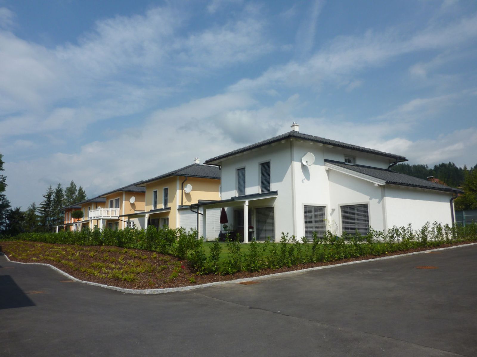 In einer aufgelockerten Bauweise wurden 50 Wohneinheiten in 10 Gebäuden (kleine Stadtvillen, sonnige Stadtwohnungen, Vorsorge- bzw. Anlegerwohnungen) auf ca. 9.000 m² gebaut.